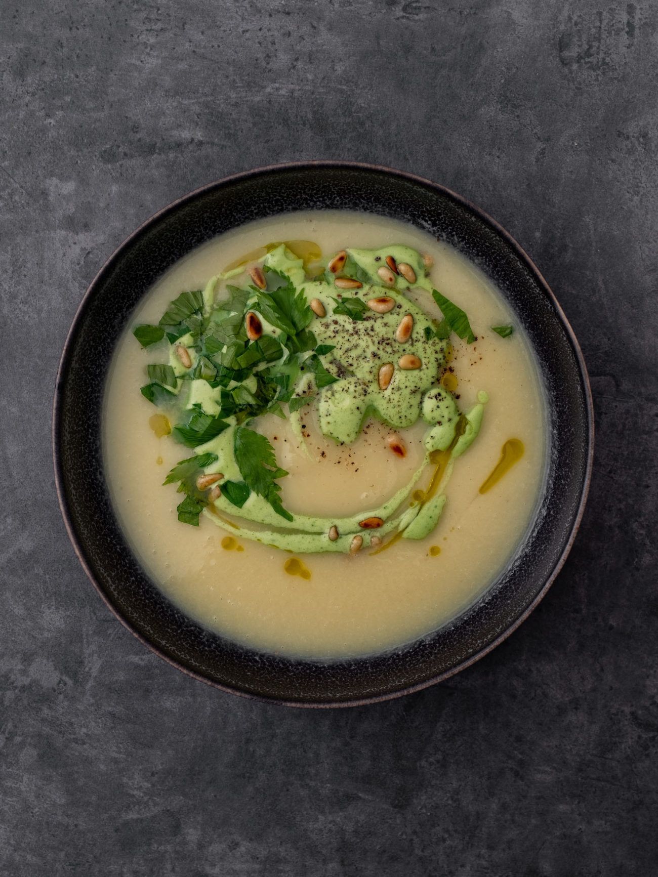 Eine wunderbar wärmende Maronensuppe als heller Kontrast zu den tollen dunklen Farben. Die sind so wunderschön!
