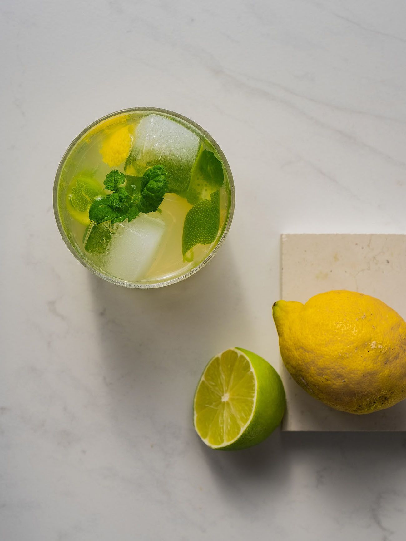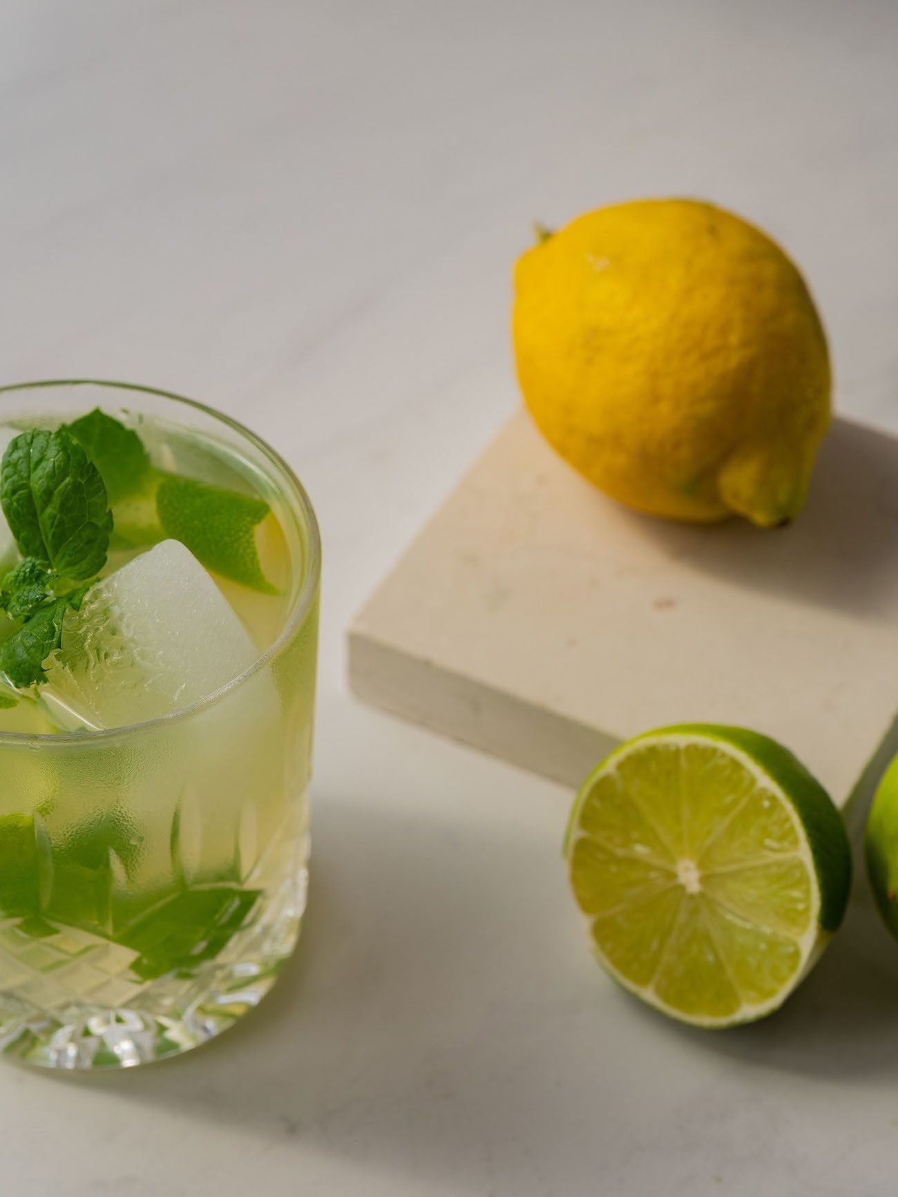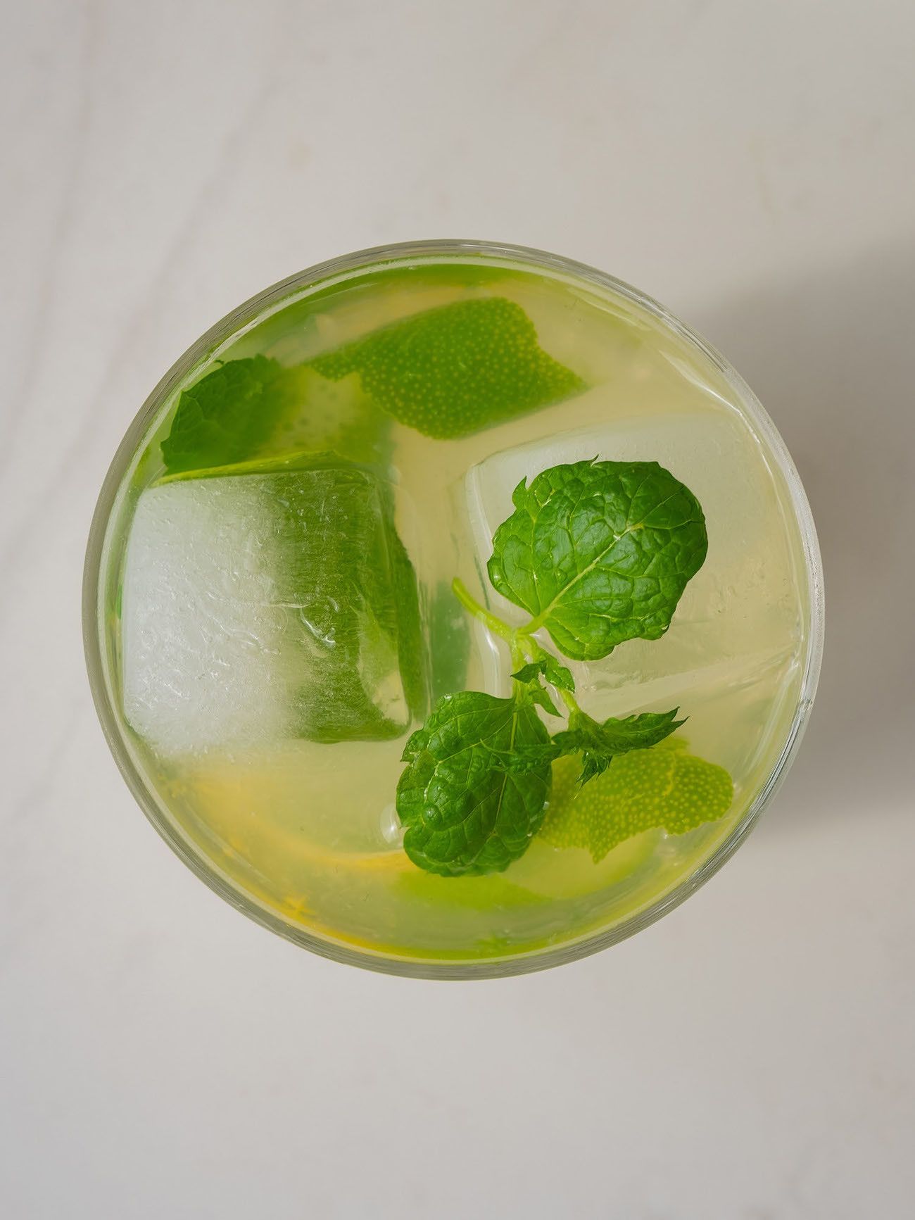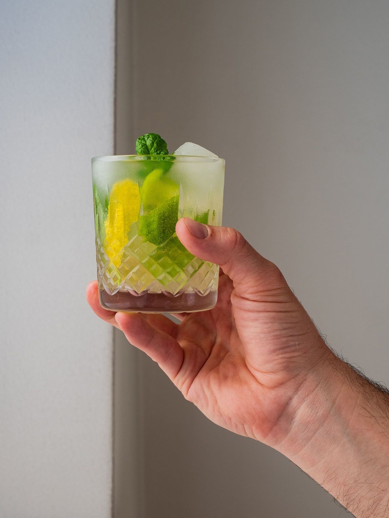- Zum Schluss nur noch den Minzestängel mit samt den Blättern zwei bis drei mal auf die flache Handfläche schlagen, um die ätherischen Öle frei zu setzten und in den Drink stecken.