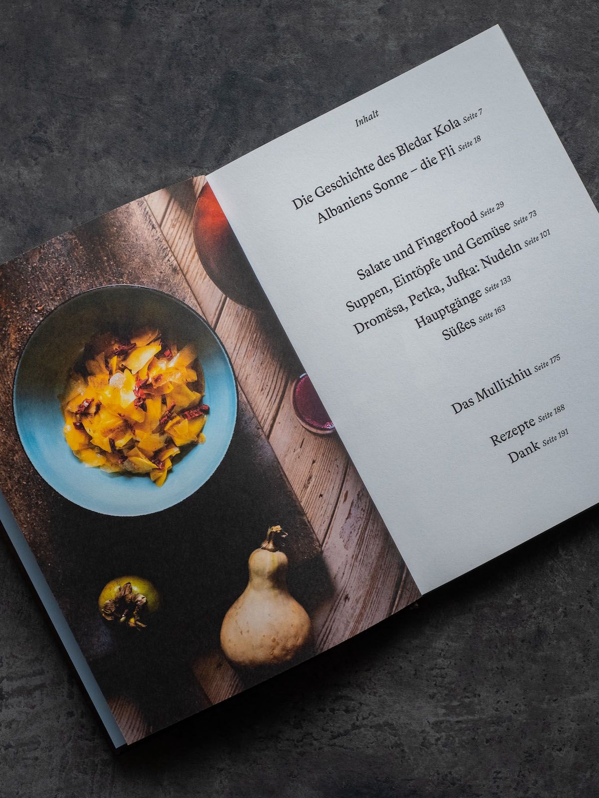 Und falls man nicht die Möglichkeit hat, nach Tirana zu Reisen und die Gerichte von Bledar und seinem Team direkt im Mullixhiu zu erleben, bietet das Buch eine Vielzahl an unterschiedlichen Rezepten für Speisen wie “Salat von Kürbis und Kakifrüchten” über “Gerollte Shtridhëla-Nudeln mit Lauch, Maronen und Trockenfleisch” bis hin zu süßen Leckereien wie “Rührkuchen mit Maulbeermelasse und Quittenmarmelade”. Die oft einfach wirkenden Gerichte brauchen kein Chichi und überzeugen alleine durch die Qualität der Produkte, die Sorgfalt bei der Zubereitung und die geschmackliche und texturelle Vielfalt und Kombination.