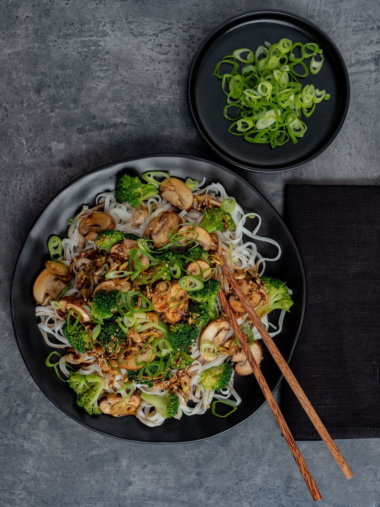 Neben dem Rezept für gebackene Birnenhälften mit Gorgonzola, Honig und Thymian habe ich diese Woche noch ein weiteres Rezept vorbereitet, welches diesen Freitag auf dem Blog online gehen soll. Gesund, schnell und lecker war das Ziel, und das ist mir ganz gut gelungen, finde ich. Und um dir hoffentlich schon mal das Wasser im Munde zusammenlaufen zu lassen, hier ein paar Eindrücke der Champignon-Brokkoli-Pfanne auf Reisnudeln. Ingwer, Knoblauch, Sojasoße und Agavensirup runden das Gericht ab und geben ihm seinen tollen Geschmack.