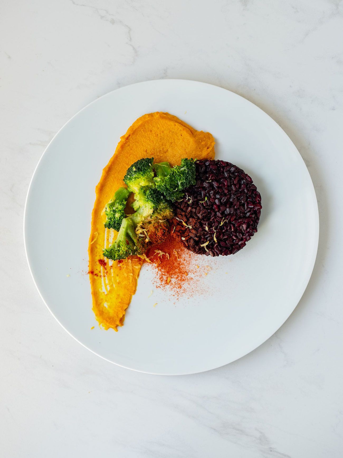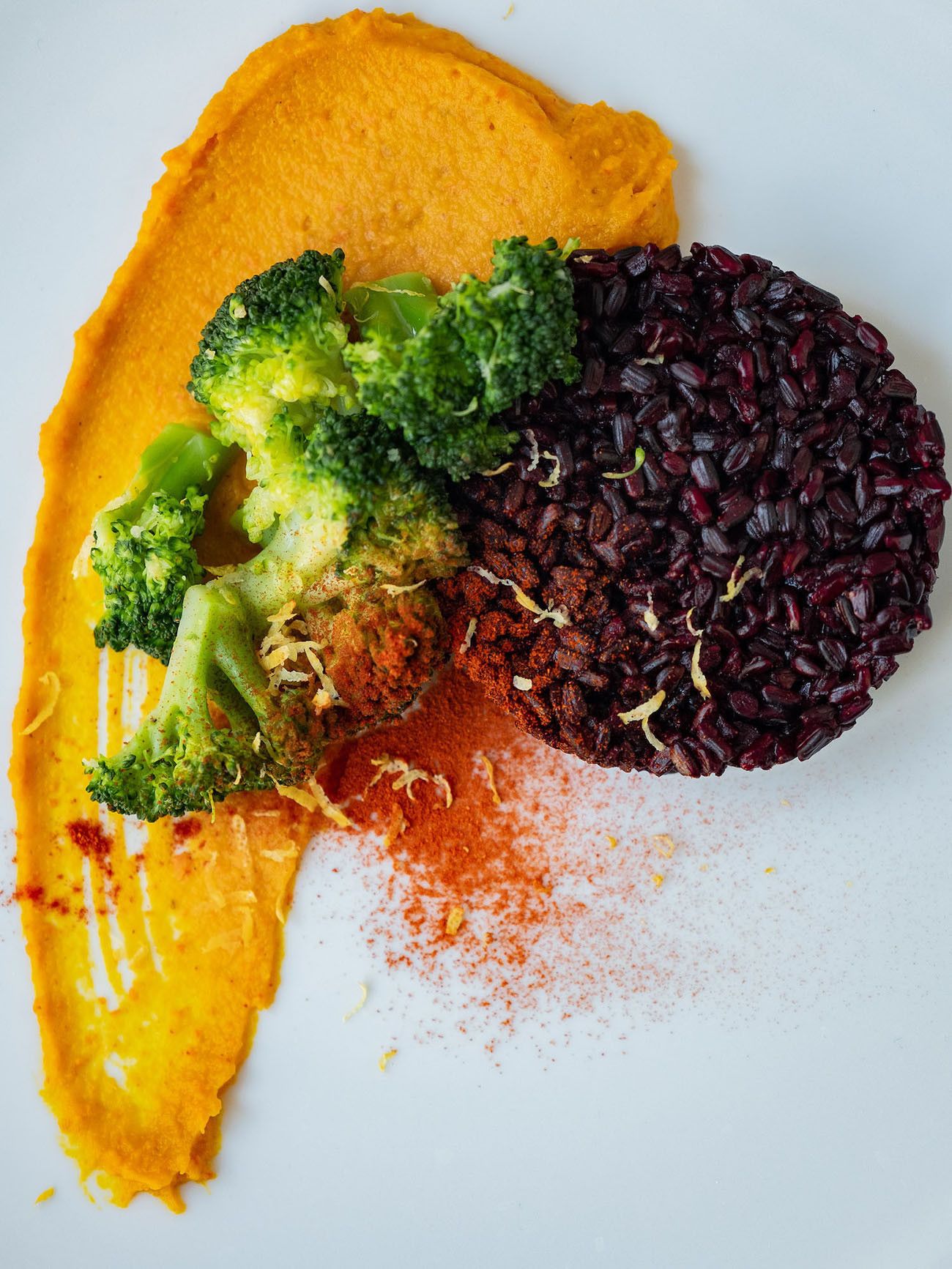 Rezept 1: Curry-Kürbispüree mit Zitronen-Brokkoli und schwarzem Reis