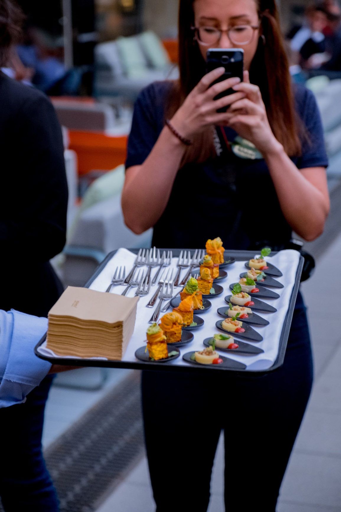 Beendet wurde die Tour durch das Hotel dann mit Dessert, Drinks und einer bombastischen Aussicht über das bei Nacht leuchtende und funkelnde Frankfurt.