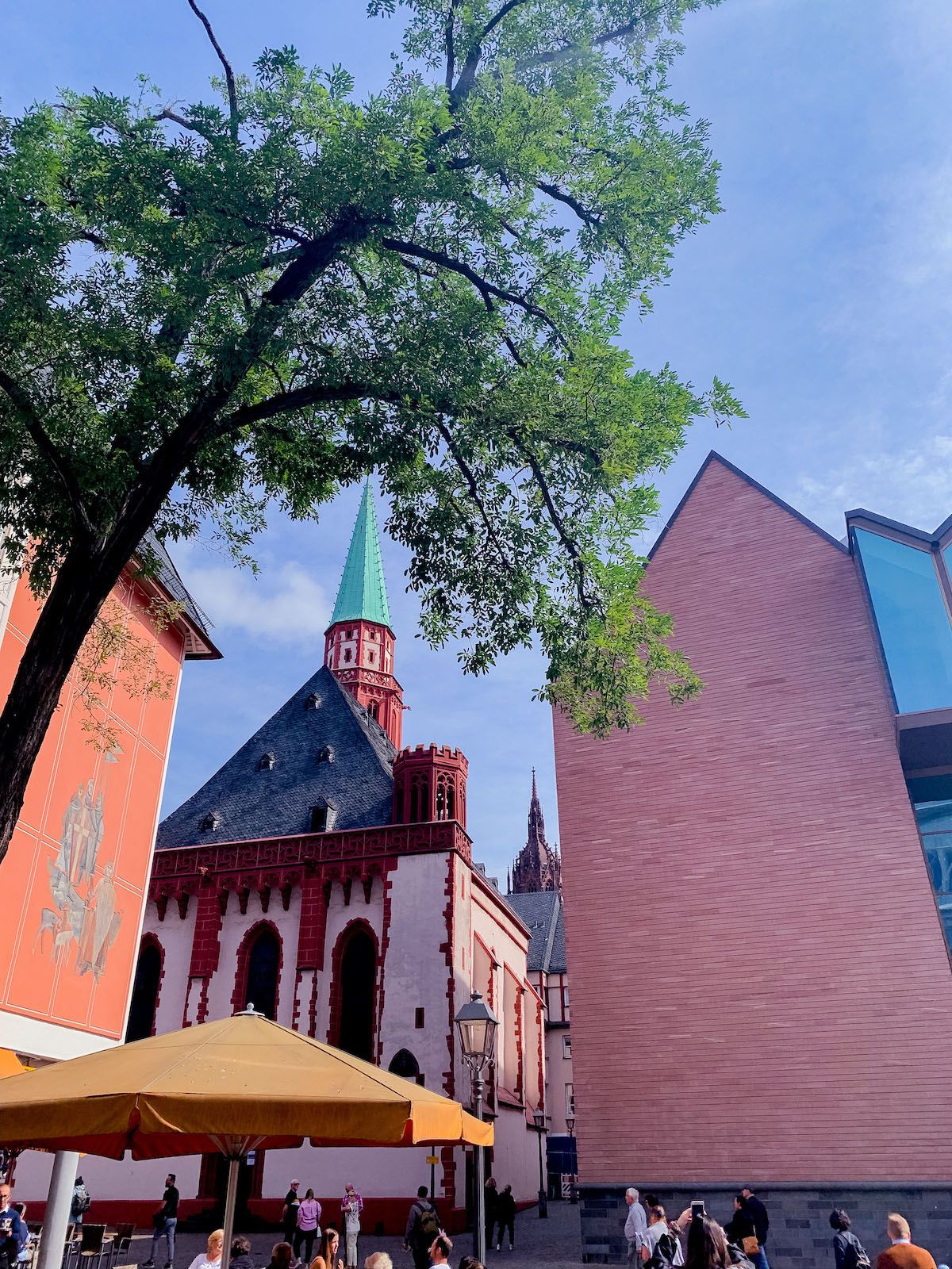 Nach einer erholsamen Nacht in meinem wunderschönen und genau nach meinem Geschmack funktional und clean eingerichteten Zimmer war es Zeit das Frühstücksbuffet genauer unter die Lupe zu nehmen und obwohl ich normalerweise in den Morgenstunden meistens nicht so ein großes Verlangen nach Nahrung habe, konnte ich mich bei der tollen Auswahl einfach nicht zurückhalten und habe ordentlich zugeschlagen, um mich für die anstehende Green City Tour durch Frankfurt und die anschließende Heimfahrt nach Berlin zu stärken. Auf der geführten Tour durch den Stadtkern von Frankfurt habe ich eine ganze Menge über die tollen Nachhaltigkeitskonzepte und Umsetzungen in der Stadt erfahren und bin mir sicher, da sollte sich die ein oder andere Stadt eine große Scheibe von abschneiden. Außerdem hat mich die architektonische Vielfalt in der Innenstadt total begeistert und ich musste mein Bild, das ich bis dahin von Frankfurt hatte, komplett verwerfen. Der Kontrast von Fachwerkhäusern, achtziger Jahre Bauten und den modernen Wolkenkratzern erzeugt eine einzigartige Spannung und eine ganz besondere Stimmung.