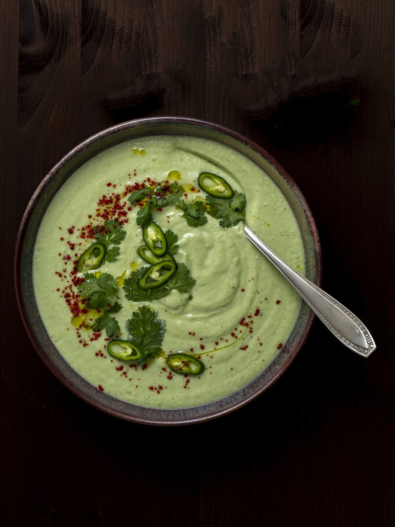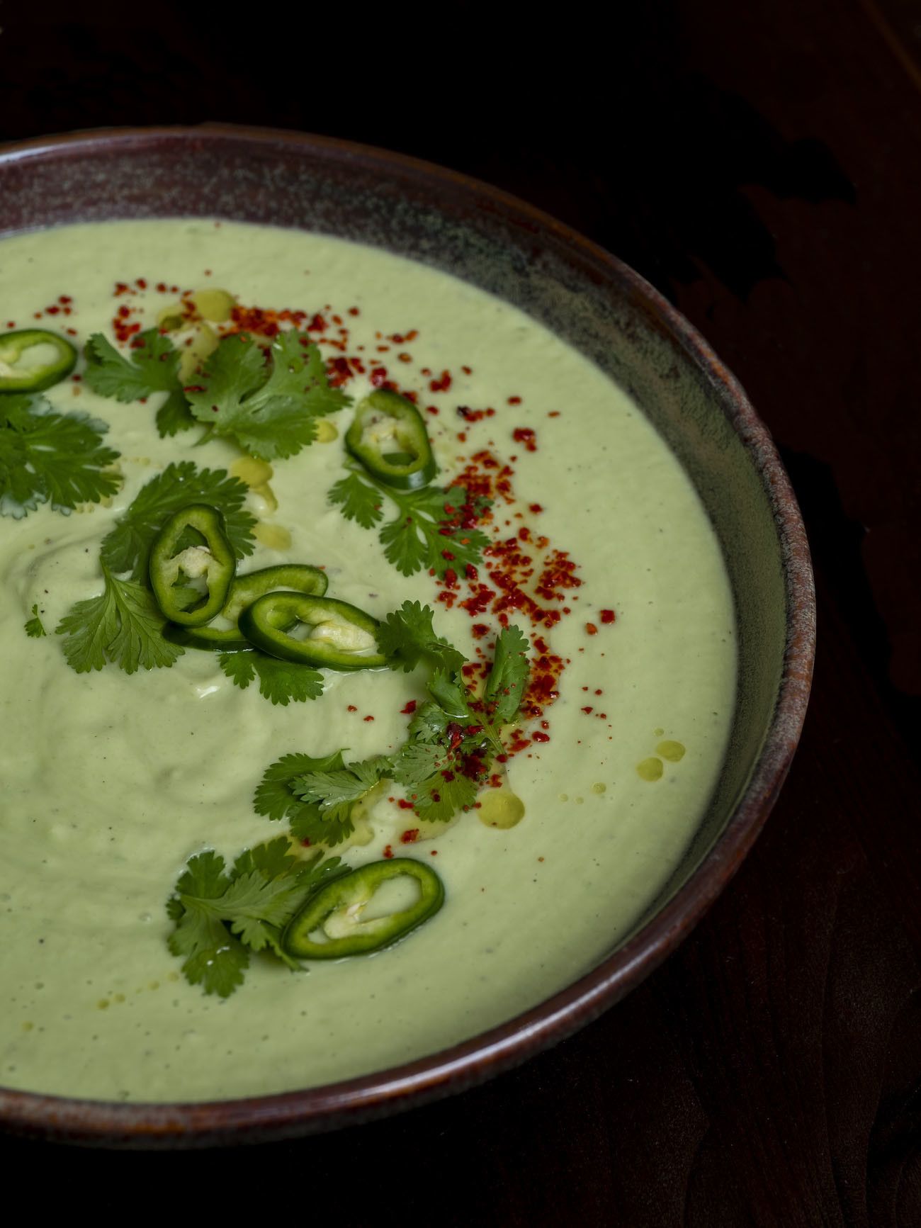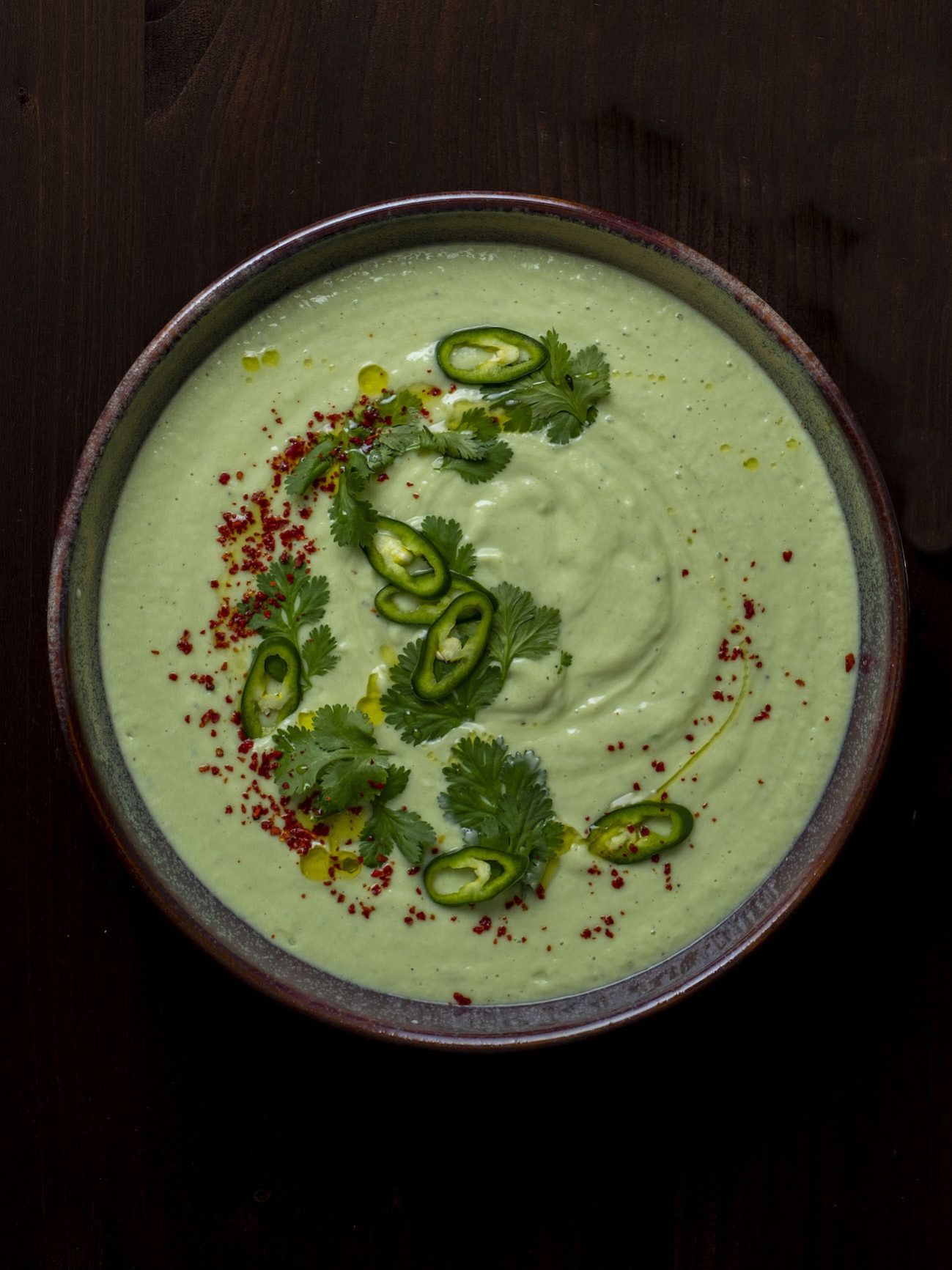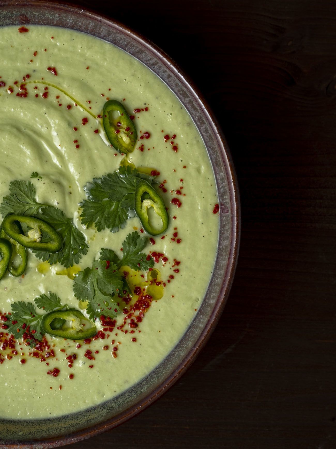 - Dafür die Suppe auf Teller oder Schüsseln verteilen und mit den restlichen Korianderblättern, den restlichen Jalapeño Scheiben und den Chili Flakes garnieren.