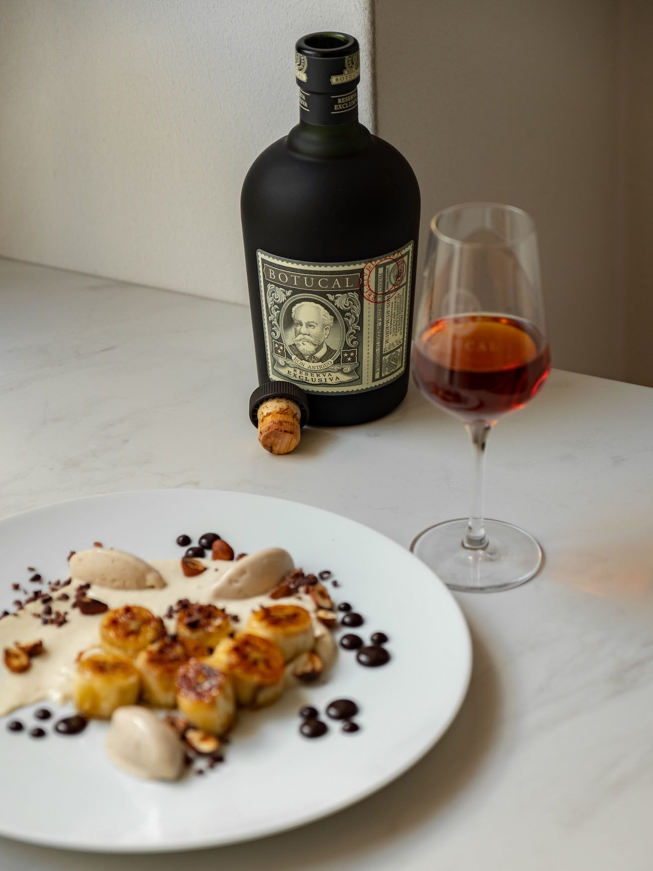 Ich koche generell ja lieber herzhafte Gerichte und fröne eher selten den süßen Freuden der kulinarischen Welt. Aber wenn es mal soweit ist, dann darf es ruhig ordentlich zur Sache gehen. Und aus diesem Grund habe ich mir eine meiner neuen Lieblings-Spirituosen zur Hand und zur Hilfe genommen, um meinem Bananen Dessert mit Haselnüssen und Schokoladen-Karamell eine ganz besondere Note zu verleihen. Die Rede ist natürlich von Botucal Reserva Exclusiva dem Spitzenrum aus Venezuela. Er schmeckt nach reifen und süßen Tropenfrüchten, Gewürzen und einem Hauch von Nuss und ist damit die perfekte Zutat, um das Gericht zu vollenden. Wer also Rum Bananen und Schokolade mag, wird bei diesem Rezept in Freudentränen ausbrechen und sollte jetzt ganz genau und aufmerksam weiterlesen.