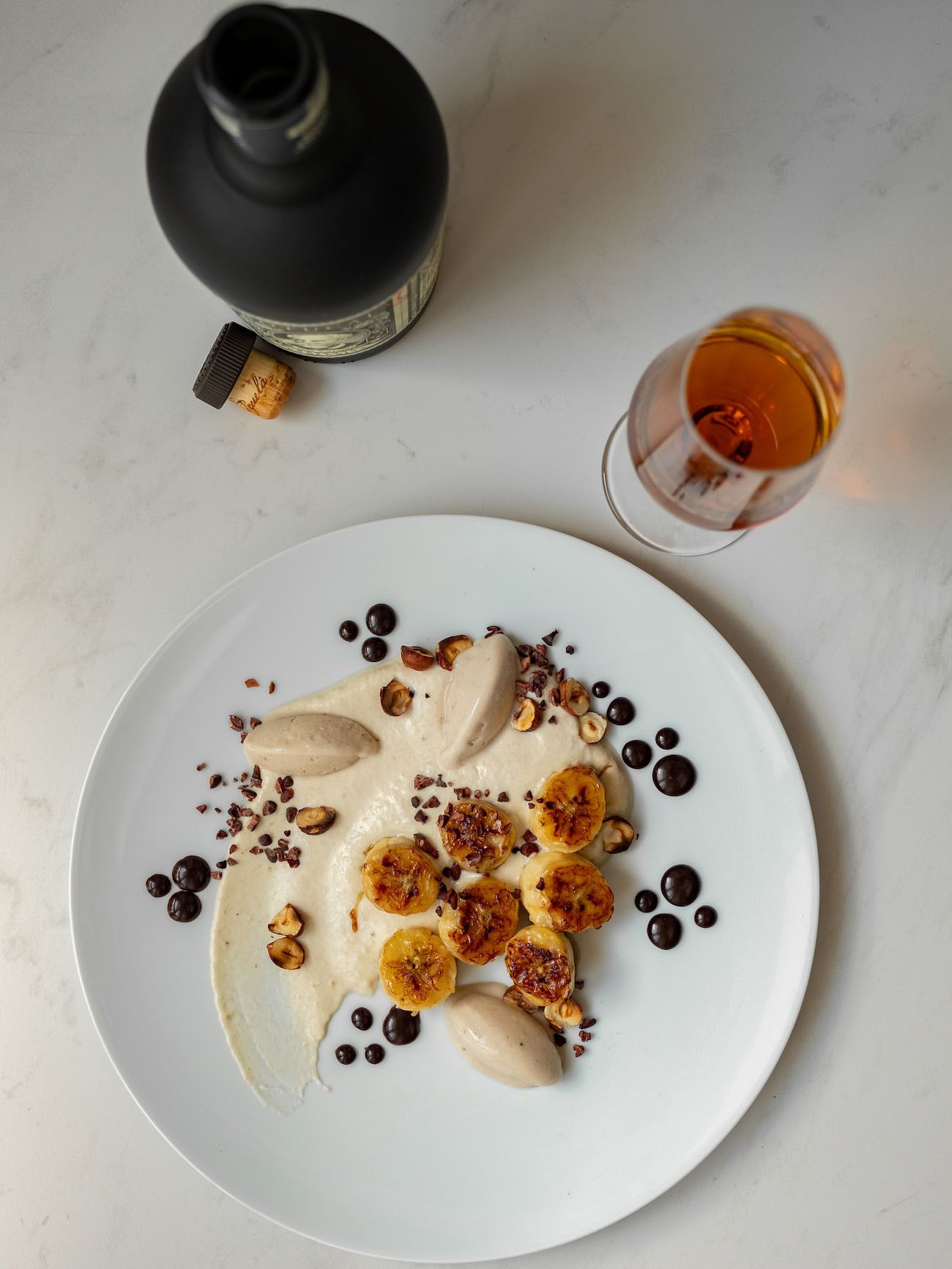 Zubereitung Bananen Dessert mit Rum, Haselnüssen und Schokoladen-Karamell :