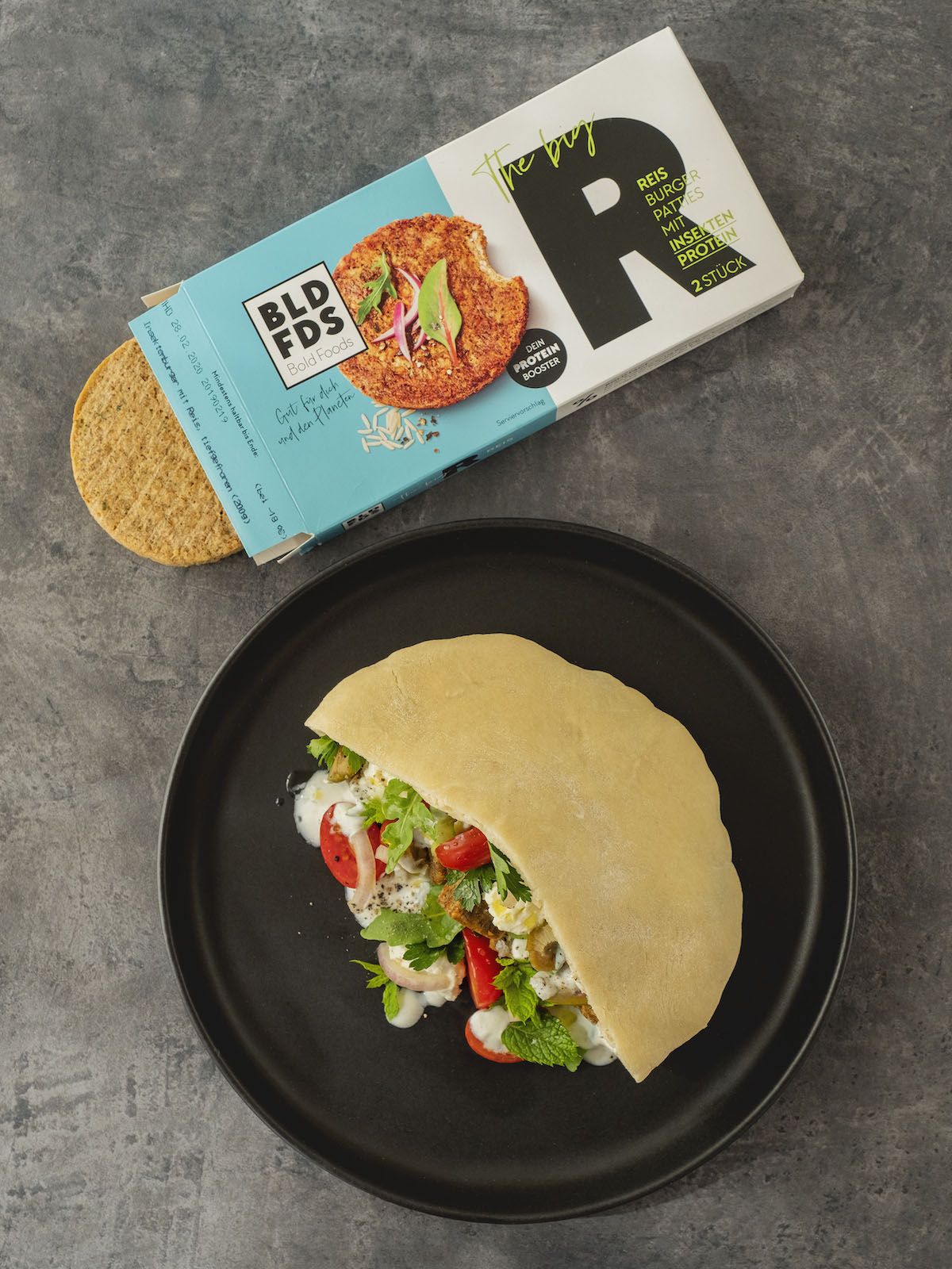 Nachdem ich dir vor einigen Wochen in diesem Blogbeitrag das Unternehmen BOLD FOODS und eines der drei Produkte der Firma das The big T Pattie vorgestellt habe, natürlich nicht ohne es mir nehmen zu lassen, ein Rezept passend dazu zu kreieren, ist diese Woche eine weitere der drei Varianten des proteinreichen Bratlings an der Reihe. Denn, wenn du es noch nicht aus dem vergangenen Beitrag wusstest, die drei unterschiedlichen Patties bestehen von 33 % bis zu 39 % aus blanchierten Buffalowürmern sowie je nach Sorte aus diversen anderen Zutaten wie zum Beispiel Reis, Spinat, Bohnen, Mais und Ei. Wenn ihr genauer wissen wollt, was es mit den Buffalowürmern und dem jungen Unternehmen auf sich hat, schaut ihr am besten auf diesem Blogbeitrag oder direkt bei BOLD FOODS auf der Website vorbei. Und damit du auch für den The big R, der seine Basis neben den 39 % blanchierten Buffalowürmern aus einer würzigen Reismischung bildet, ein passendes und vor allem leckeres Rezept hast, habe ich mir die BOLD FOODS The big R Knusperwürfel im Pita Brot mit griechischem Salat, Rucola und Joghurt-Zitronen-Soße einfallen lassen und würde mich freuen, wenn du es nachkochst.
