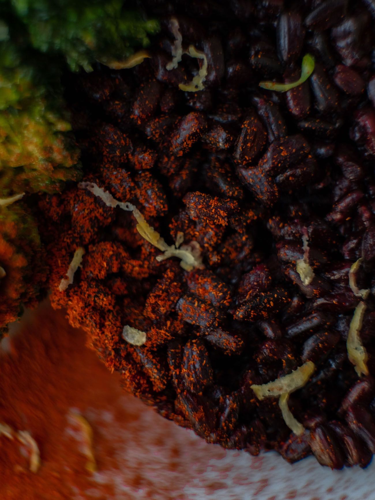 - Zum Schluss den Reis gut waschen und mit der zweifachen Menge Wasser und Salz in den kleinen Topf geben und für zirka 40 Minuten auf niedriger Hitze garen.