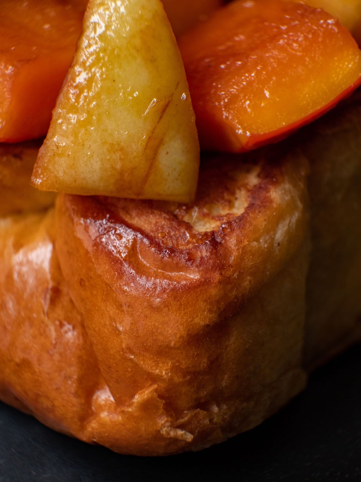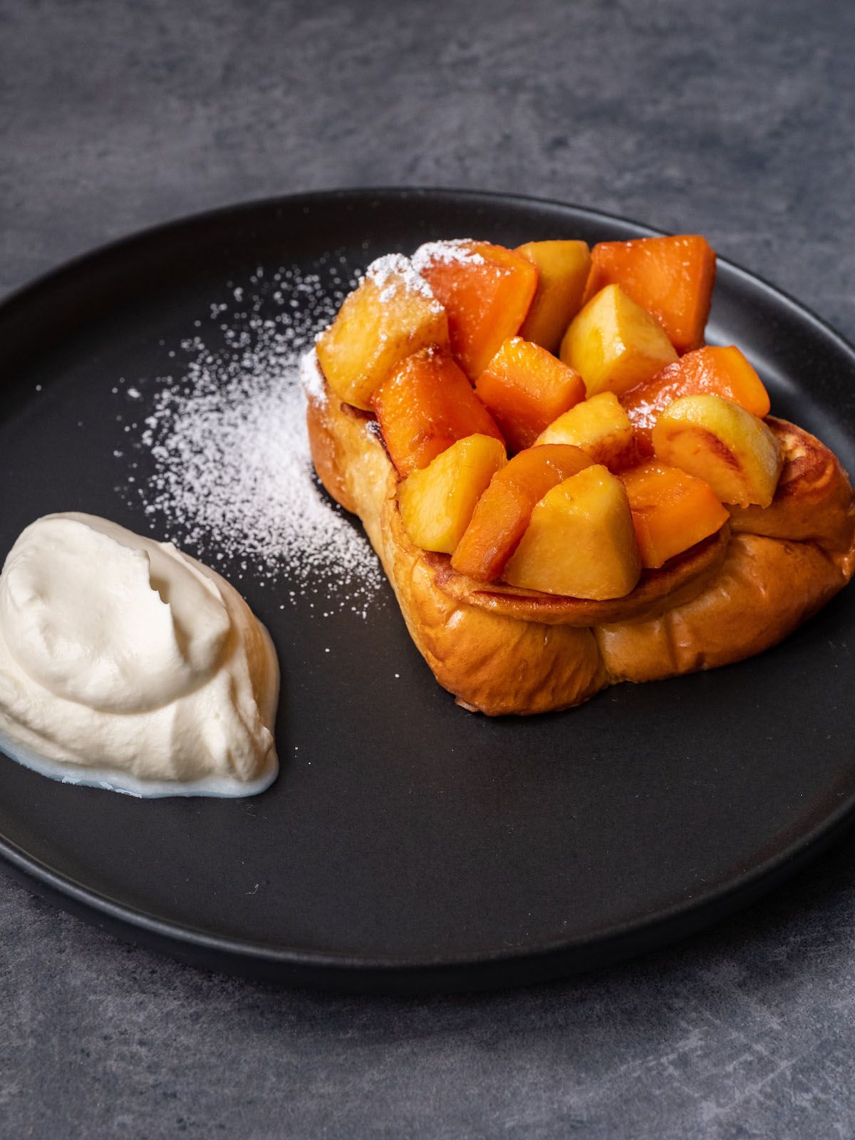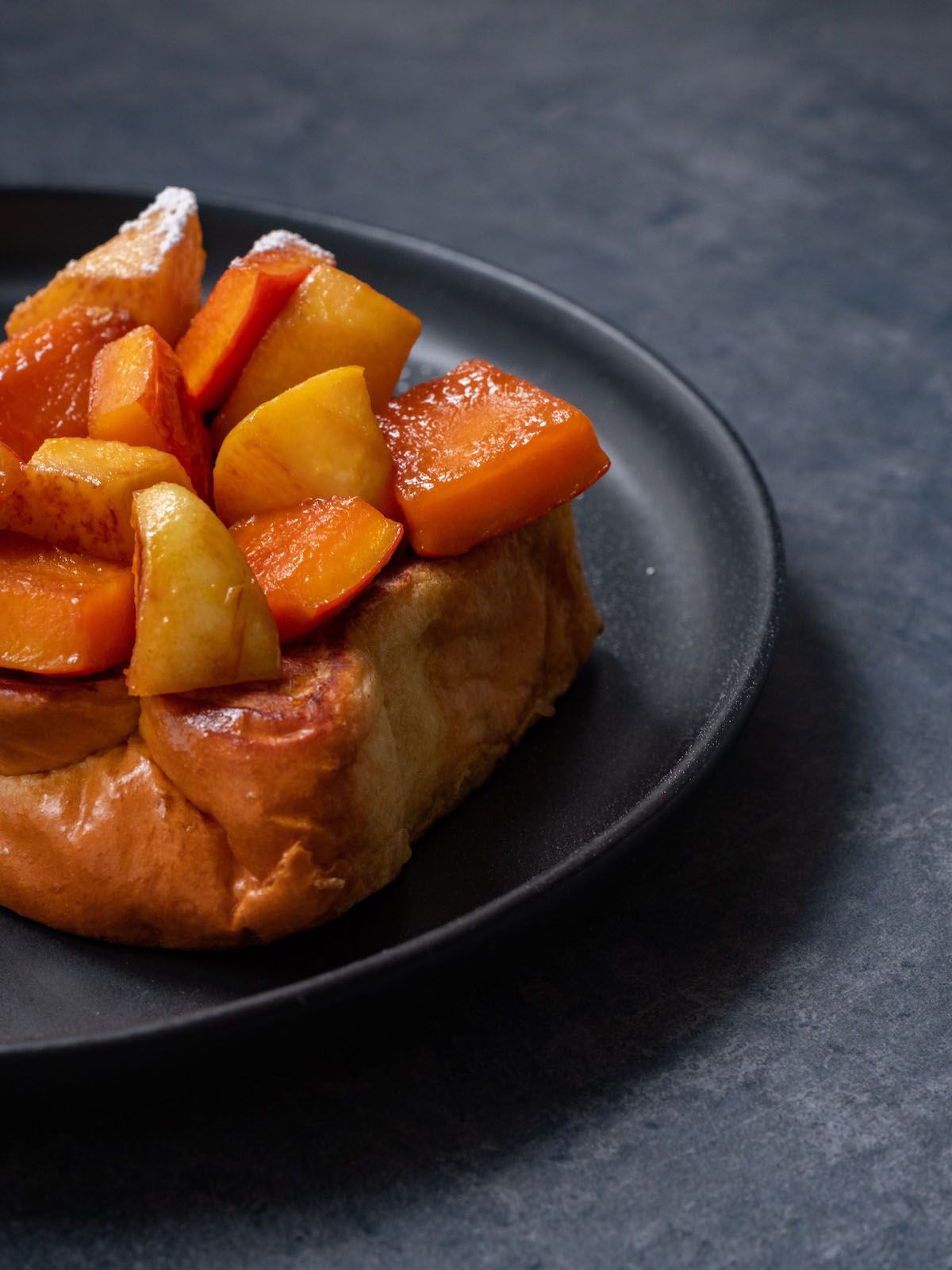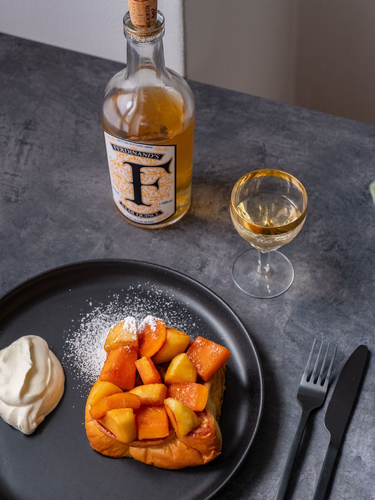 Zubereitung French Toast mit Kürbis, Quitte, Schlagsahne und Ferdinand’s Saar Quince Sloe Gin: