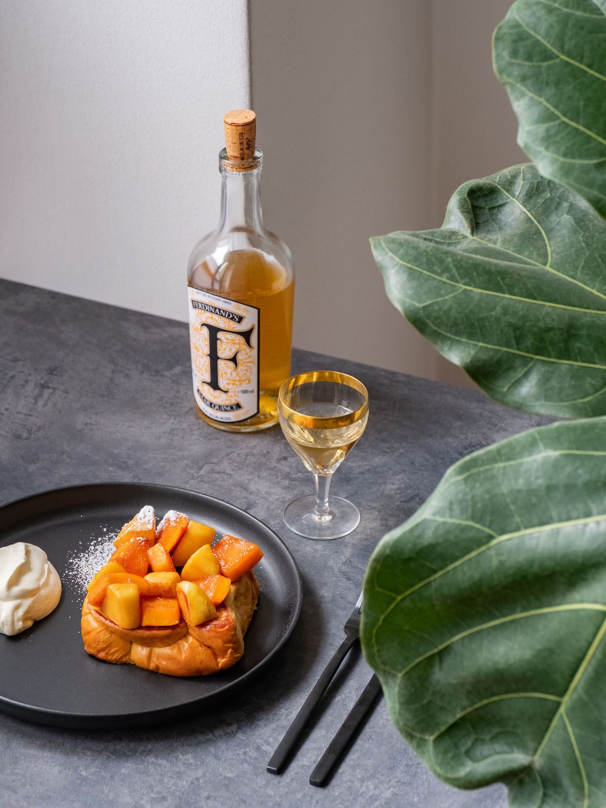 Der Herbst hat angeklopft und so langsam werden die Tage wieder merklich kürzer und etwas kälter. Das Laub an den Bäumen beginnt sich hier und da schon zu verfärben und Produkte wie Kürbis und Quitte füllen die Marktstände, Supermarktregale und Speisepläne. Da ich ein großer Freund beider bin und finde, dass sie wunderbar zusammenpassen, habe ich ein Rezept für einen French Toast mit Kürbis, Quitte, Schlagsahne und Ferdinand’s Saar Quince Sloe Gin kreiert und bin vom Ergebnis begeistert. Der warme und fluffige Brioche French Toast zusammen mit den süßen, im Ferdinand’s Quittenlikör karamellisierten Kürbis- und Quitten Stücken gekrönt von angeschwipster Schlagsahne sind eine traumhafte Kombination und lassen das Herz jedes Dessertliebhabers höher schlagen. Wenn dir jetzt auch schon das Wasser im Munde zusammenläuft, ab in die Küche und viel Spaß beim Zubereiten und gutes Genießen!