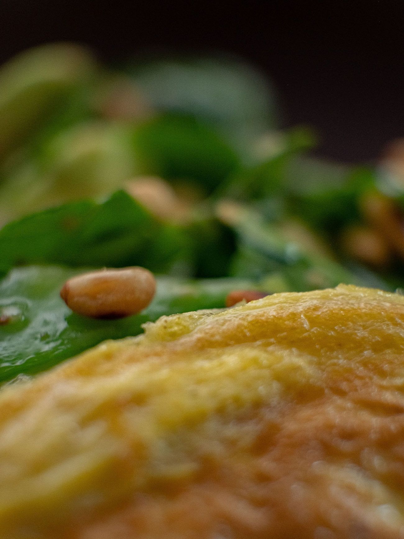 Zubereitung und Anrichten des Omeletts mit Spinatsalat :