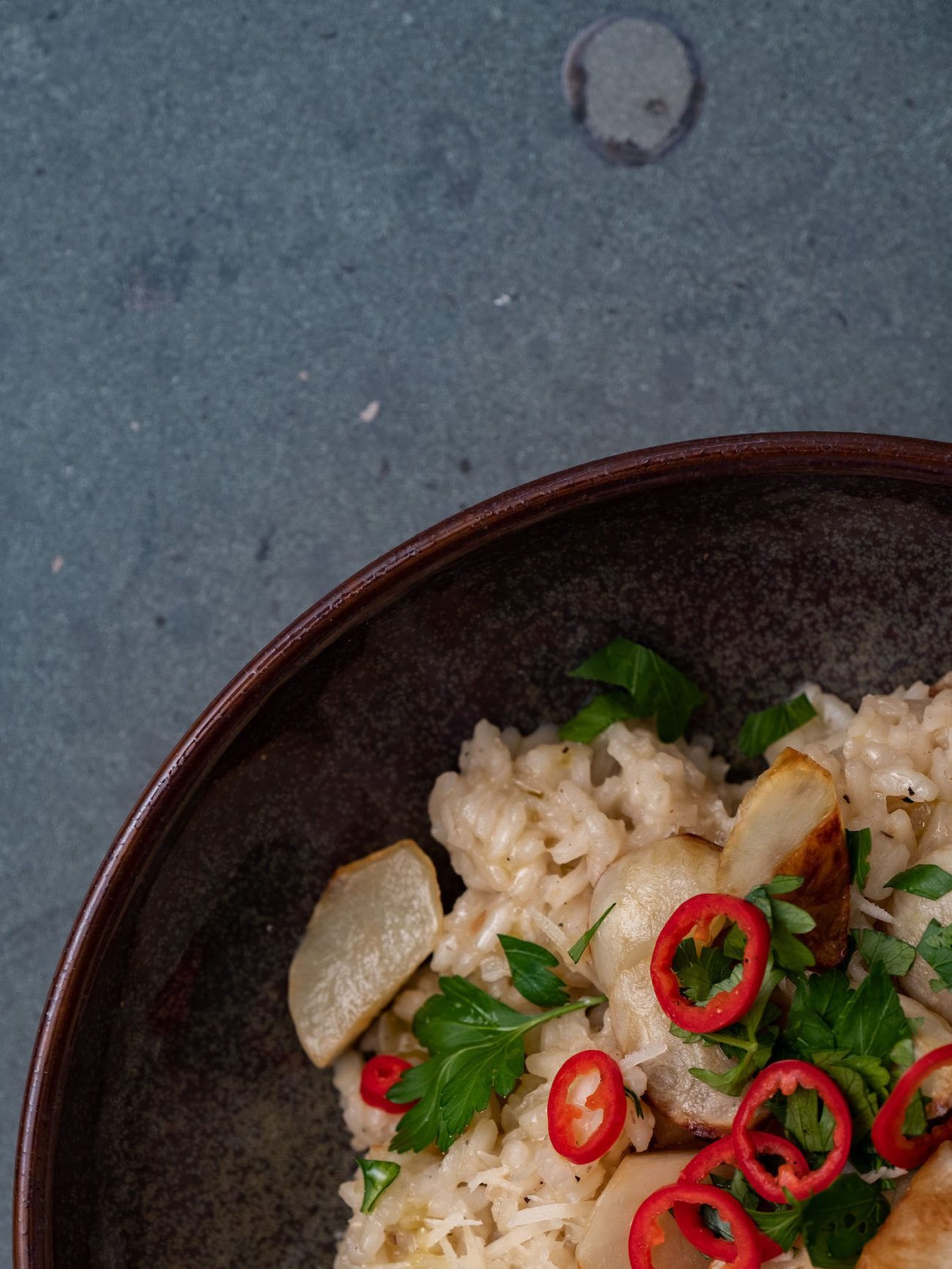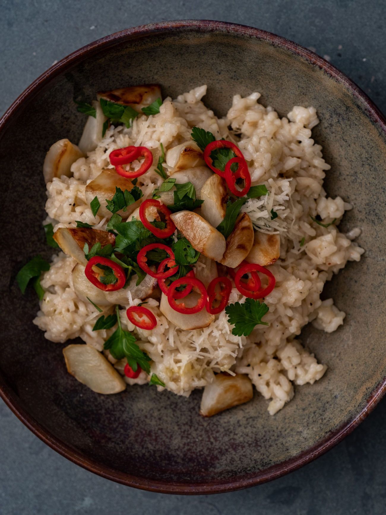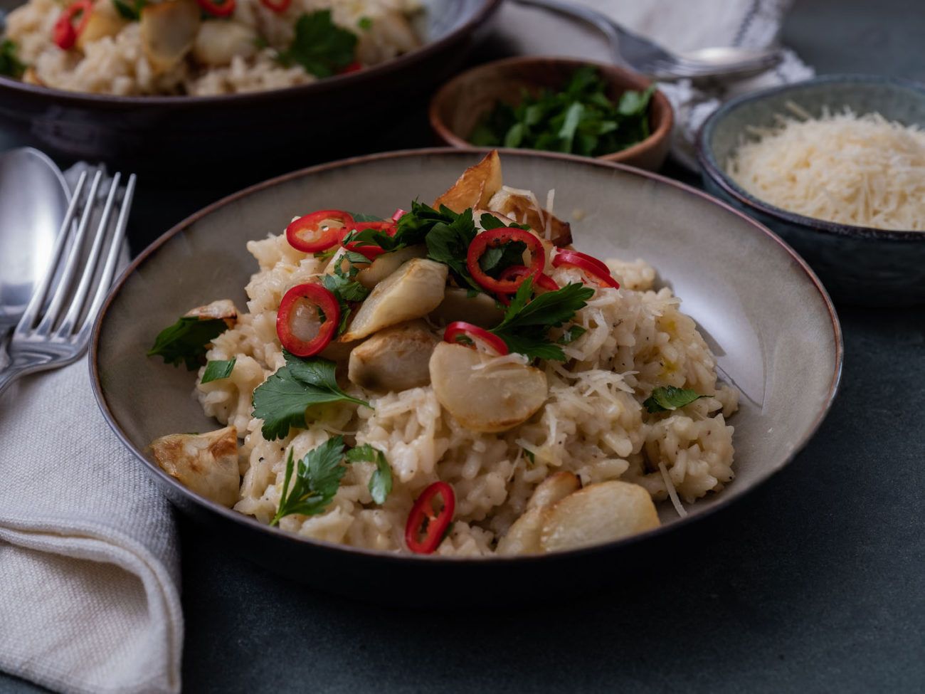 - Das Risotto auf Teller oder Schüsseln verteilen.