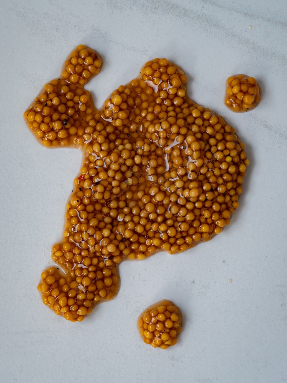 Dass Senfkaviar ein wahrer Alleskönner ist und so gut wie jedes herzhafte Gericht aufwertet, war mir sofort klar und ich habe nur noch daran gedacht, wie ich so schnell wie möglich mehr von dem Kaviar des armen Mannes herstellen könnte. Zum Glück ist das Grundrezept für die schmackhaften Miniperlen auch super einfach und benötigt neben einigen wenigen Zutaten und Werkzeugen lediglich ein wenig Geduld. Das Grundrezept lässt sich auch je nach Vorliebe super mit Kräutern und Gewürzen aufmotzen. Wenn du jetzt neugierig geworden bist und diese kulinarische Offenbarung auch mal probieren willst, wünsche ich dir viel Spaß beim Zubereiten und guten Appetit!