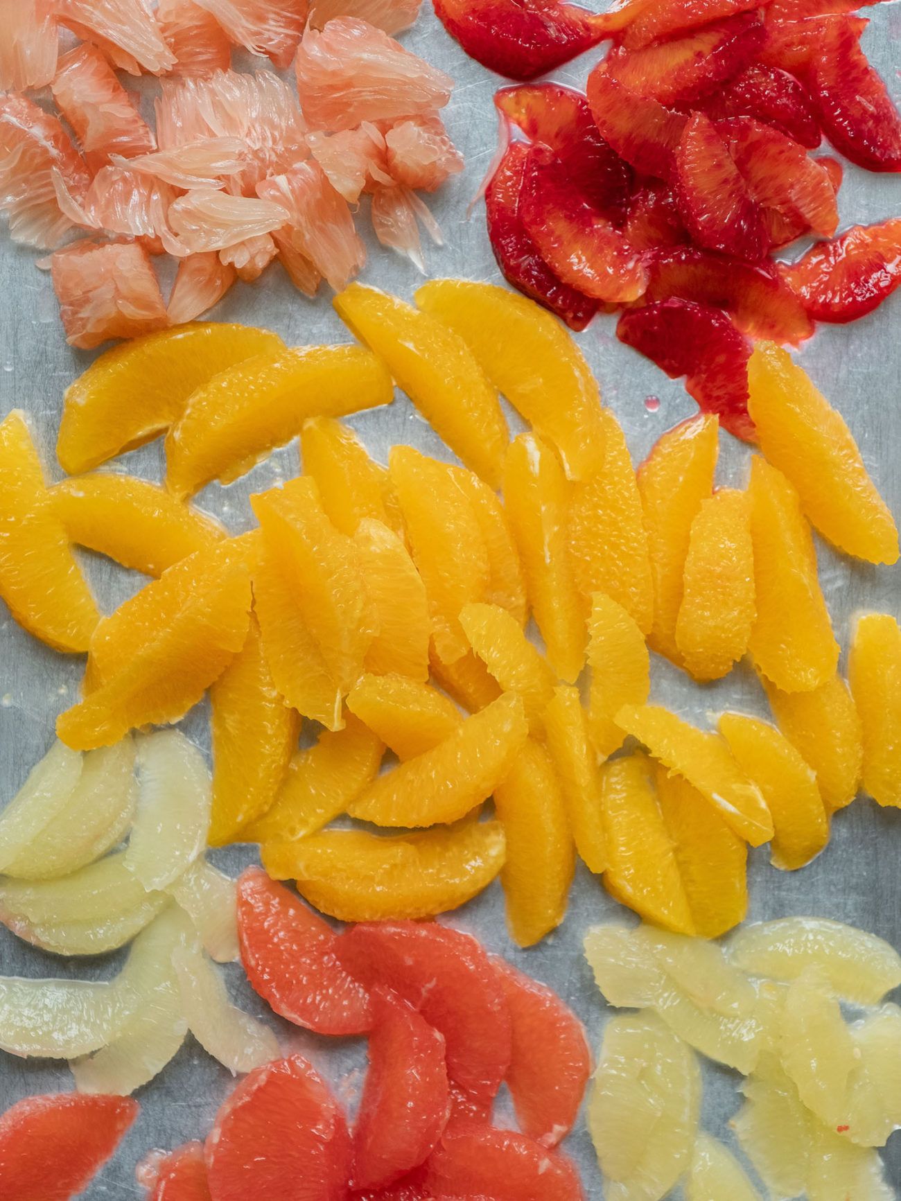 - Nun alle Zitrusfrüchte außer den Pomelo Schnitzen filetieren (hier findet ihr ein Video wie