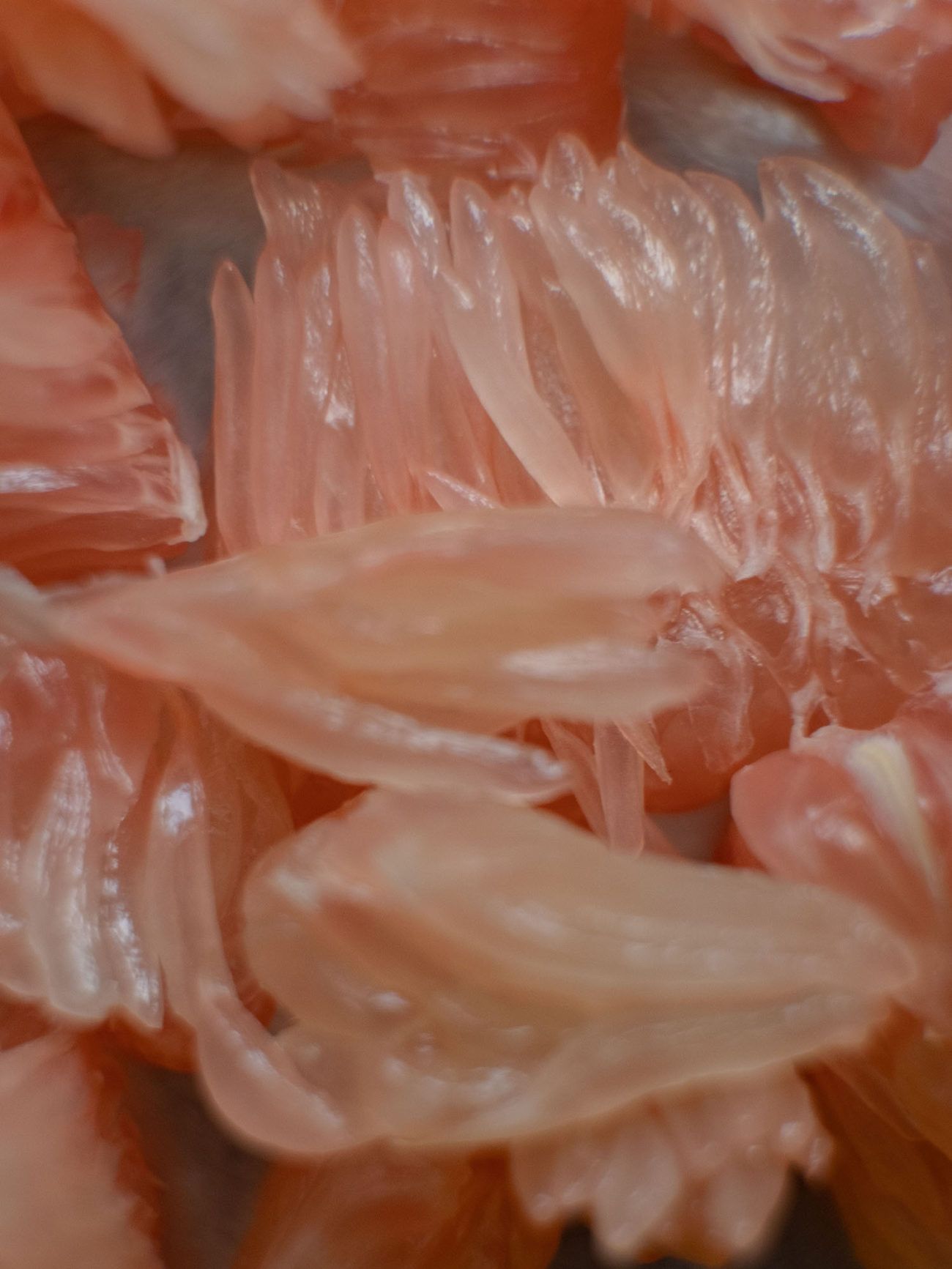 - Im nächsten Schritt die Pomelo Schnitze von der Haut und den kleinen Kernen befreien und in kleine Stücke zerteilen.