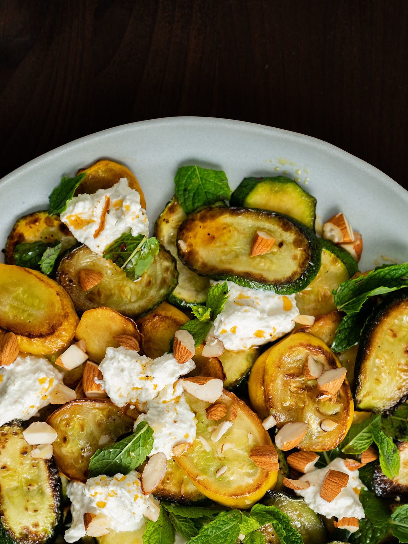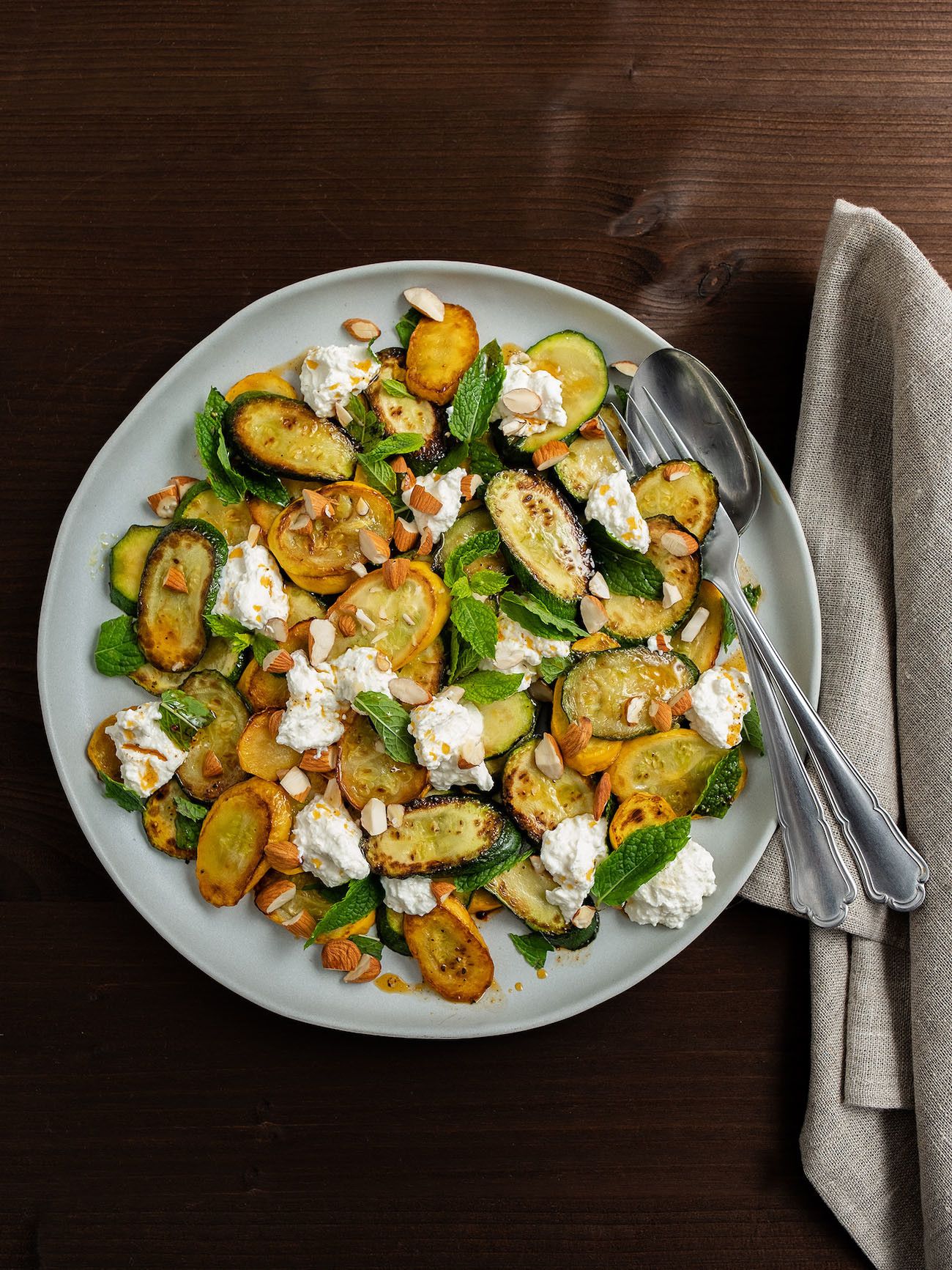 Zubereitung Zucchinisalat mit Ricotta, Mandeln und Minze :