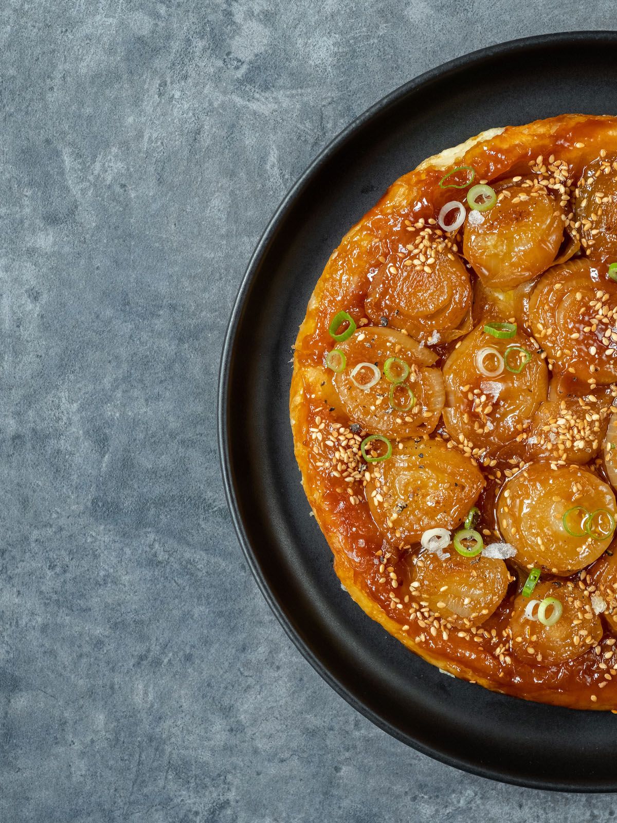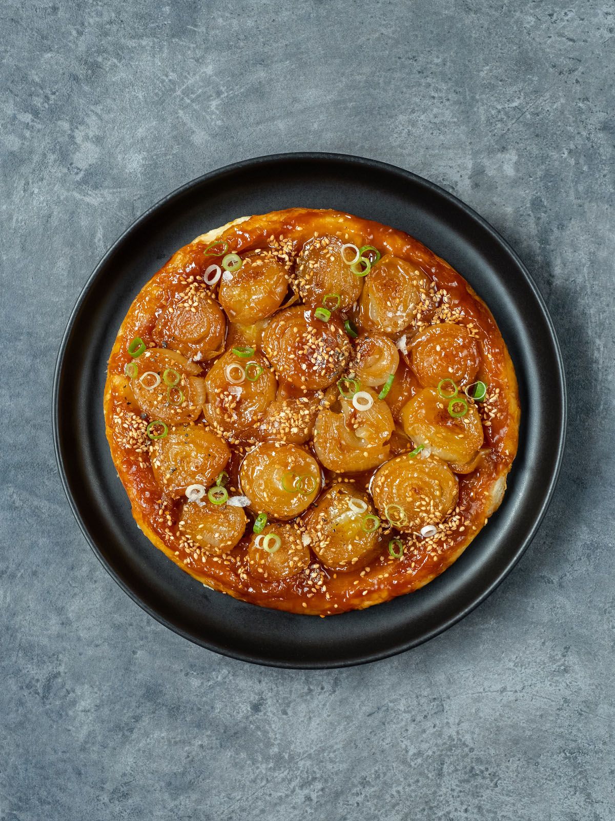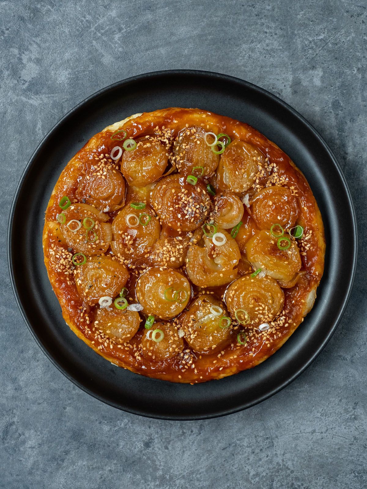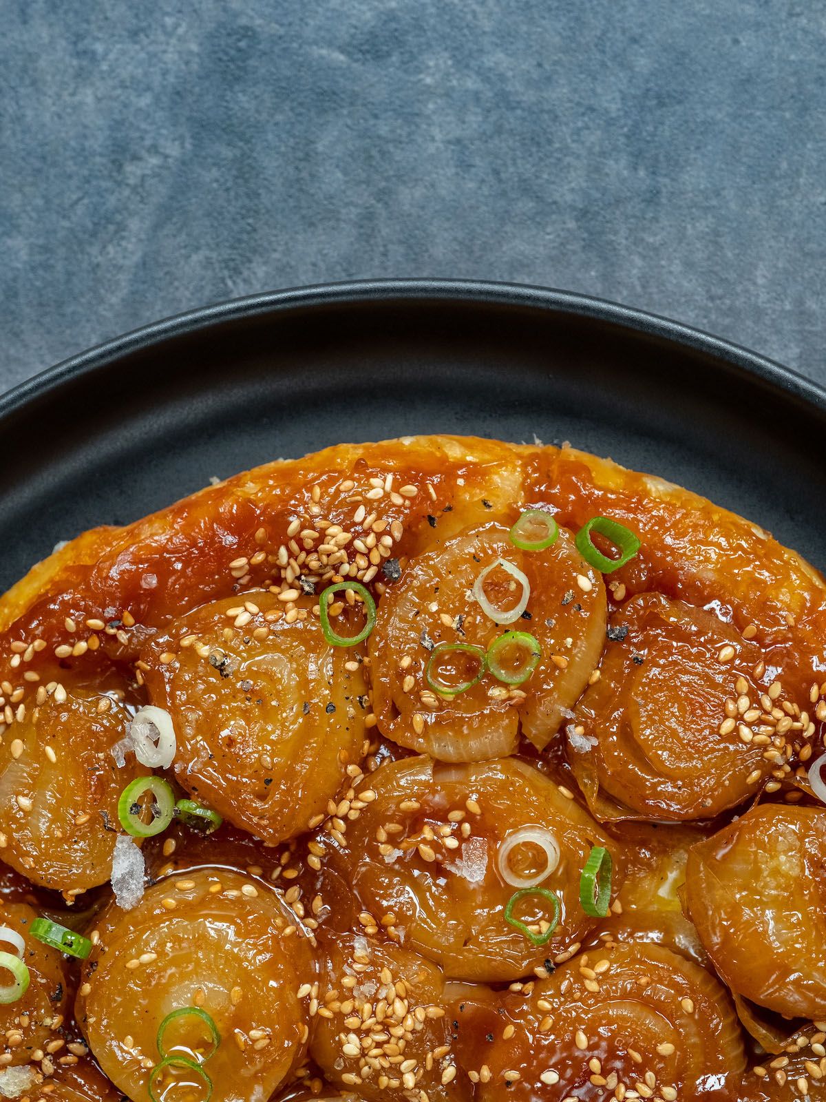Zubereitung Zwiebel-Miso Tarte Tatin mit Sesam und Frühlingszwiebeln :